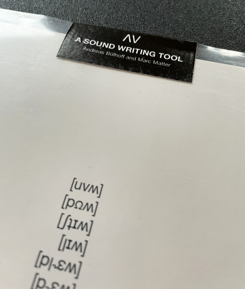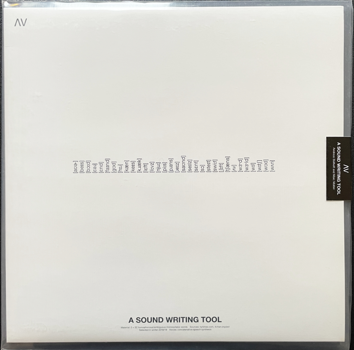 ɅV is at the same time a post-digital take on sound poetry as it is fueled by the current landscape of online debates and their ideologies. In its combinatorial filter bubble, looped words become a writing method that may produce fragmentary narratives or arbitrary mantras. This release is part of the collective curatorial practice of Research & Waves, activating the record in performances, workshops and lectures that will be documented at researchandwaves.net. The artwork, designed by Jan Klöthe, features all words in phonetic transcription as well as graphic scores of the 10 tracks. Andreas Bülhoff (sync zine, Library of Artistic Print on Demand) and Marc Matter (Institut für Feinmotorik, The Durian Brothers, Salon des Amateurs) first met for a collaborative sound poetry performance at Poesiefstival Berlin in 2018, resulting in an ongoing artistic resarch of which ɅV is its latest manifestation.