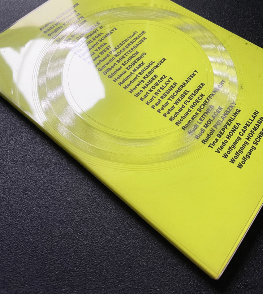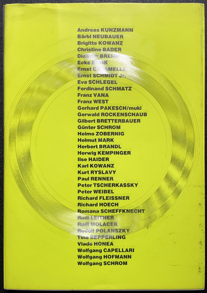 Artists in the book: Brigitte Kowanz, Dietmar Brehm, Ernst Schmidt Jr., Franz West, Gerwald Rockenschraub, Peter Tscherkassky, Peter Weibel, Richard Hoech, Herbert Brandl, and many others.