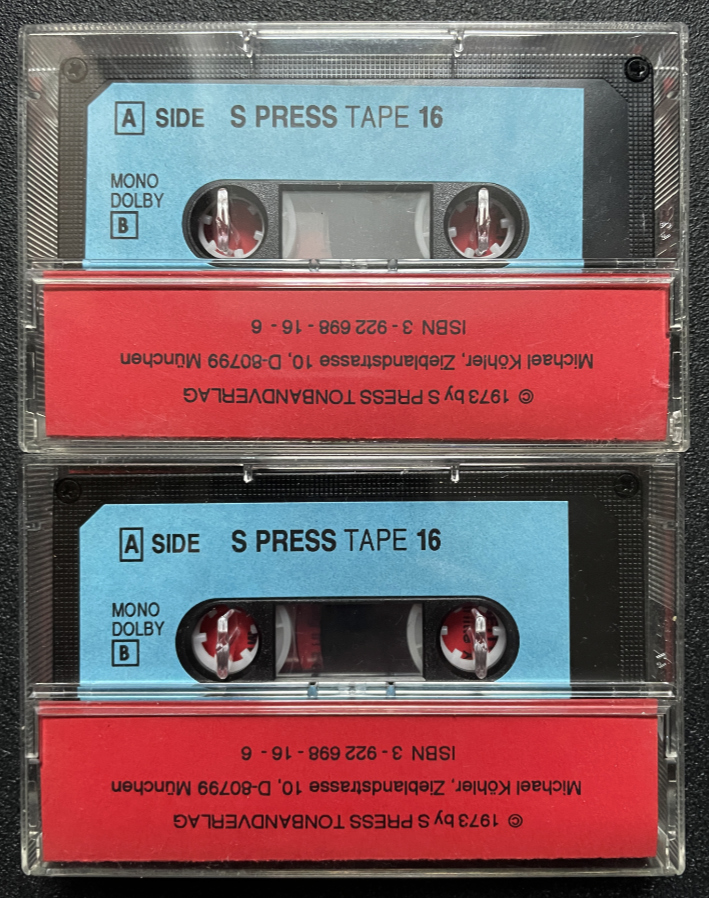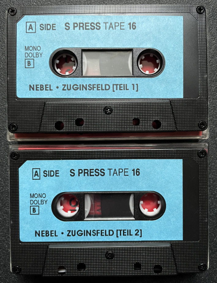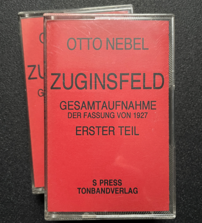 Two cassettes with the complete ”Zuginsfeld” piece by German writer and visual artist Otto Nebel (1892-1973).